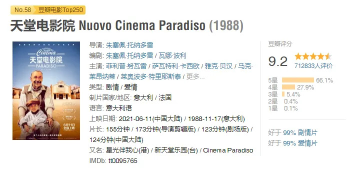今天要分享的这部电影就是在当时提升阅片量的过程中,老师告诉了一个好的办法就是从电影网站的评分由高到低,一部一部看,一遍一遍看,这个过程中有幸看到了这部写给电影的情书——《天堂电影院》