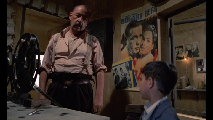 然而,天有不测风云。部队前线传来噩耗,在新一批死亡的官兵名单中,就有多多的父亲。母亲整日面露悲伤,但多多此时还不懂这些。当他看到一张《乱世佳人》的海报时,还露出了笑容。不久之后,一部电影爆火,很多人排了一天队都没能看上。以至于电影院清场时遭到许多人的不满和抗议。多多和弗雷多在楼上观望这一幕,弗雷多问多多,要不要给他们放电影。多多不明白要怎么放,只见弗雷多摆动一面镜子,影片就跟着缓缓移动到了墙外。